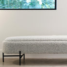 Function meets style with the Cinta, a bench designed with both elegance and utility in mind. Thin metal legs support the finely upholstered frame, and the textured fabric on the top and bottom are soft to the touch. With a small footprint, this piece provides a versatile seating option for your entryway, at the end of your bed, or in your living room.