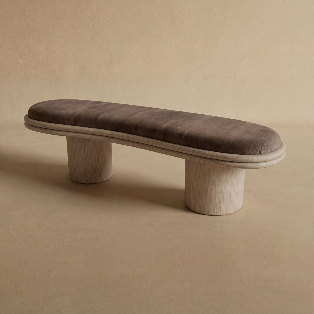 Inspired by the rhythmic motion of the coast, the Onda Bench captures the quiet power of a receding wave. Its name—Italian for wave—is reflected in the gentle, kidney-bean curve of the seat, designed to soften the linear architecture of modern interiors.