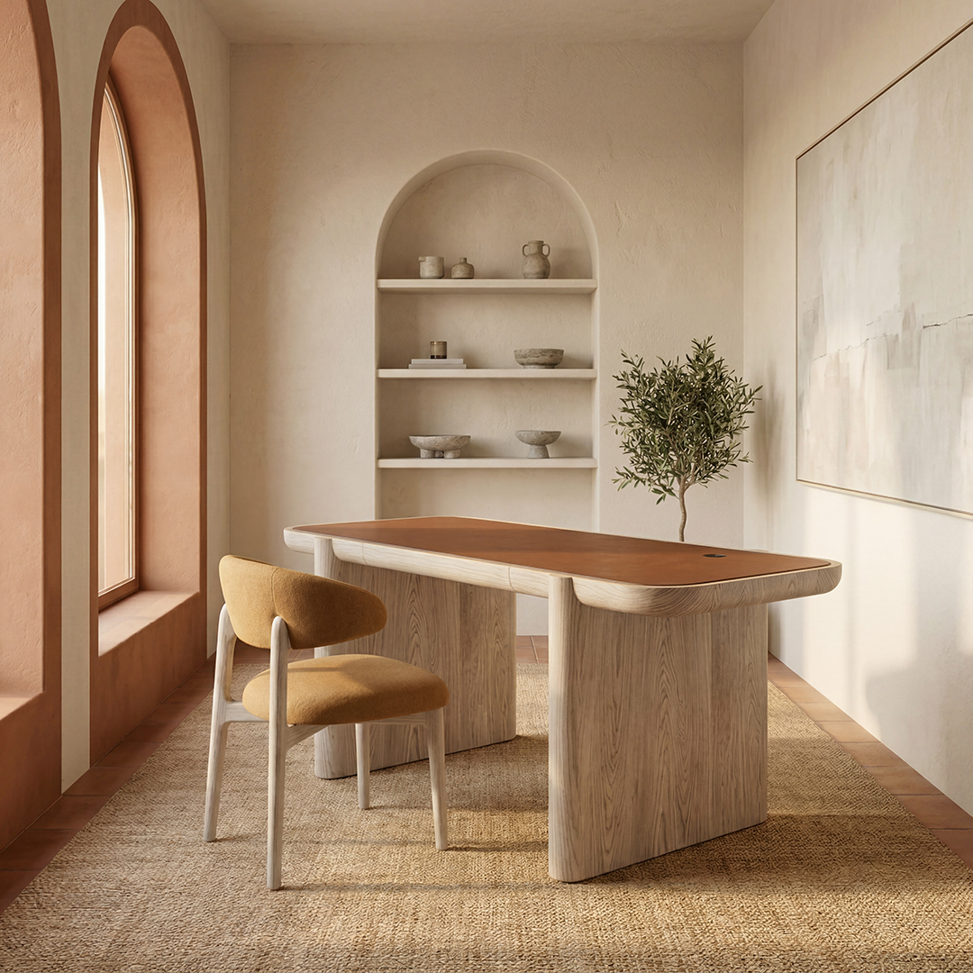 Nido, Italian for nest, explores the idea of form being gently held rather than imposed. The top rests seamlessly within the legs, creating a quiet moment of connection where each element supports the other.