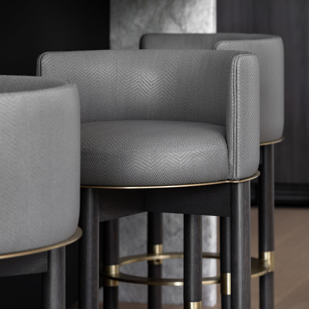 A harmonious combination of upholstery, wood, and metal, the Anello brings a level of elegance to the modern home. Generously upholstered with a slim back and cylindrical legs, this eye-catching piece is a stylish addition to your kitchen, dining space and bar.