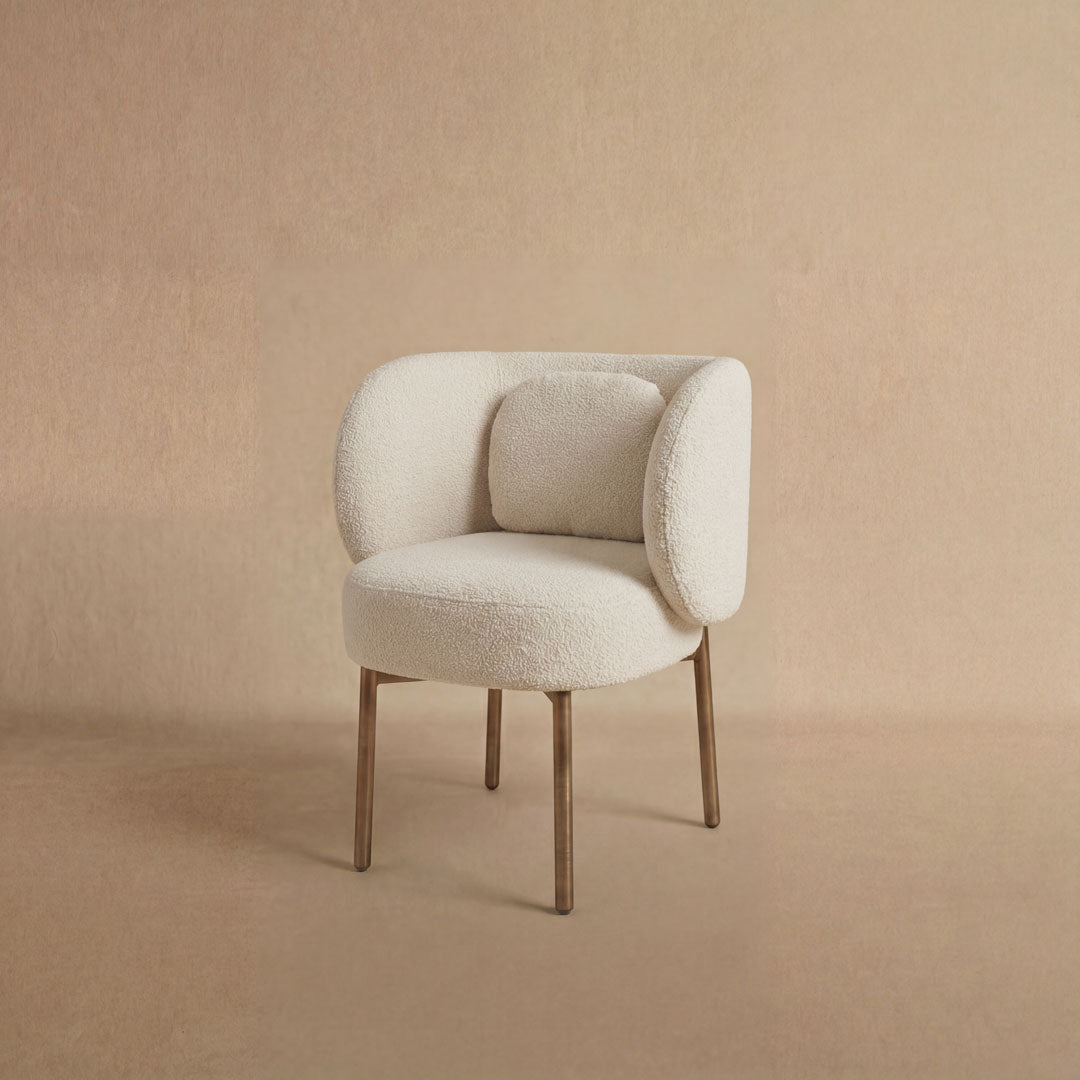 Auri is a well-designed chair that balances out a graphical and sculptural aesthetic with precise ergonomics. The upholstered back shell provides excellent support and gently hugs your back, making it ideal for a prolonged dinner. The slim metal legs present a great contrast to the bulbous top, creating a very interesting dynamic between heavy and light, wide and thin.