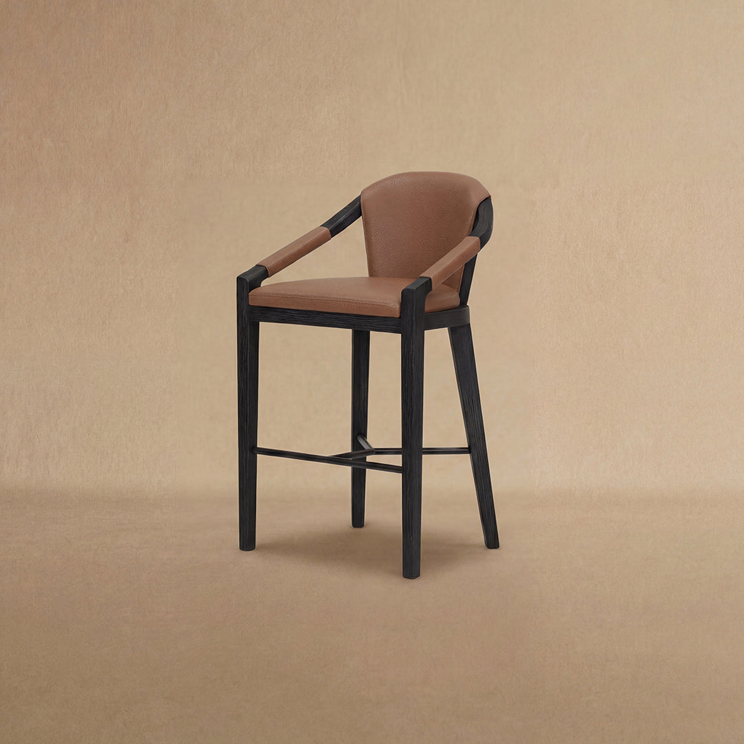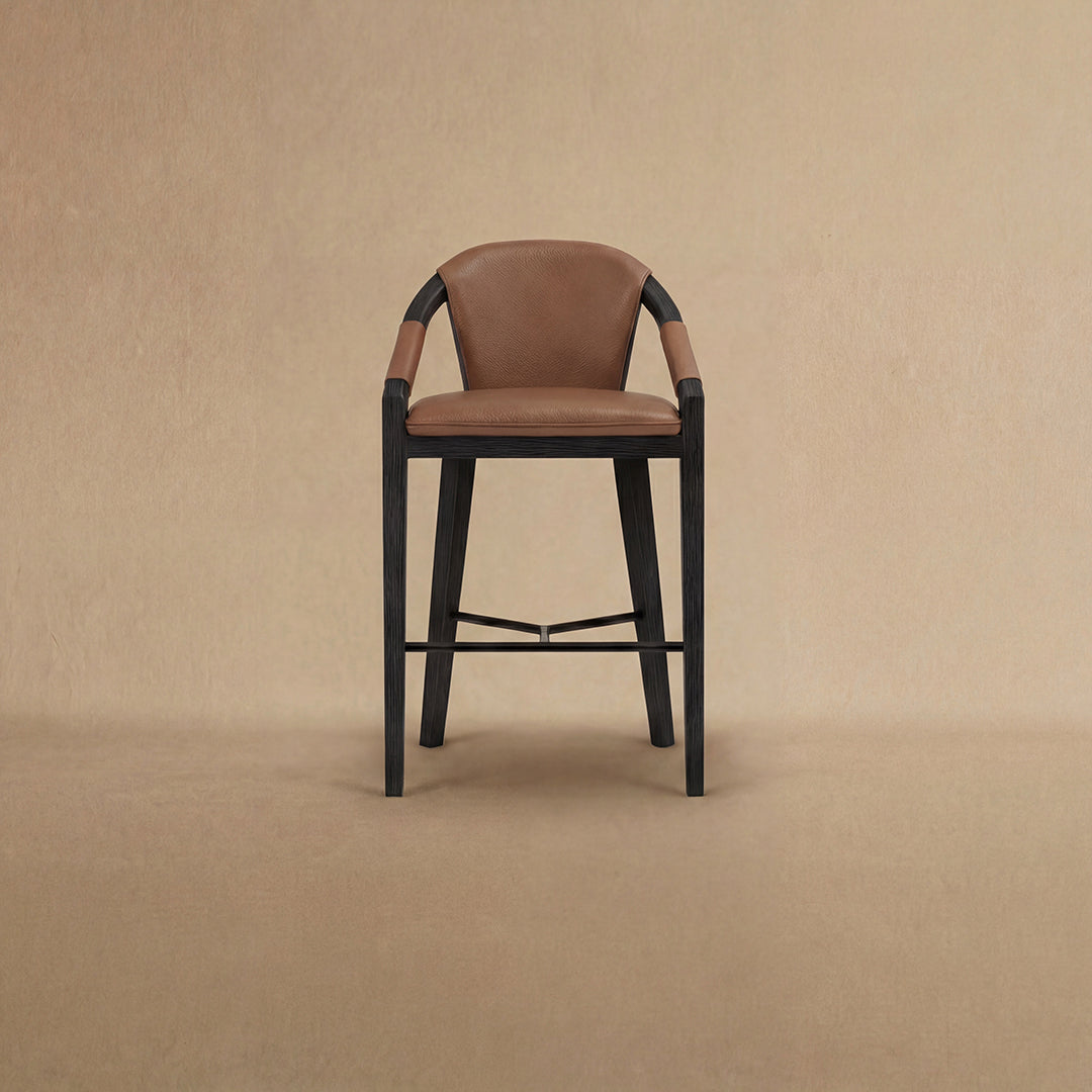 Experience the epitome of refined design with the Castello Counter Stool. This exceptional piece showcases wrapped armrests, seamlessly blending comfort with style, while a sleek modern metal stretcher adds a contemporary touch. The solid wood base and structure are a testament to craftsmanship, featuring intricate details with complex radii and angles that elevate this stool to the status of a finely crafted piece of art. The Castello Counter Stool is not just a seat; it's a statement of sophistication, combining form and function in a way that enhances the aesthetic allure of any space.